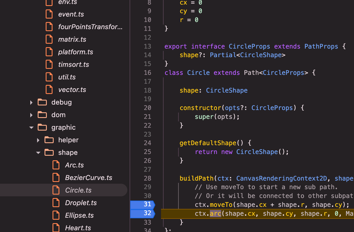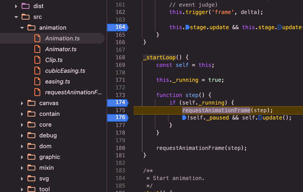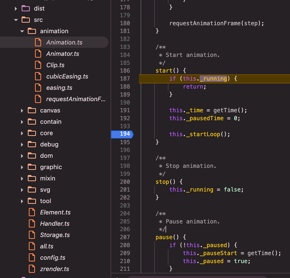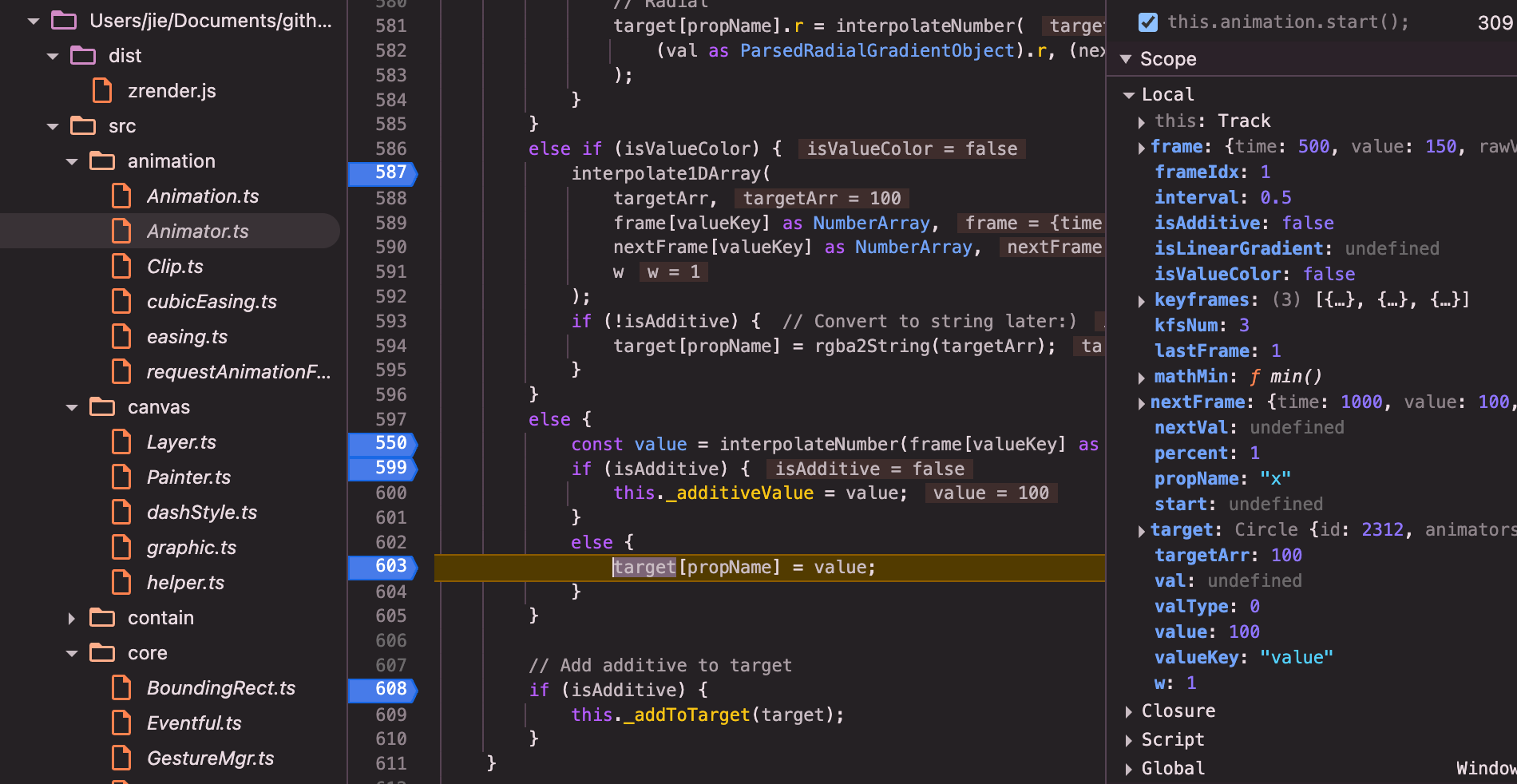 • 浏览器可直接打开本地的test文件夹下的html,使用绝对地址: /Users/jie3131/Documents/github/zrender/test/animation-keyframe-easing.html, 即可开始调试流程;