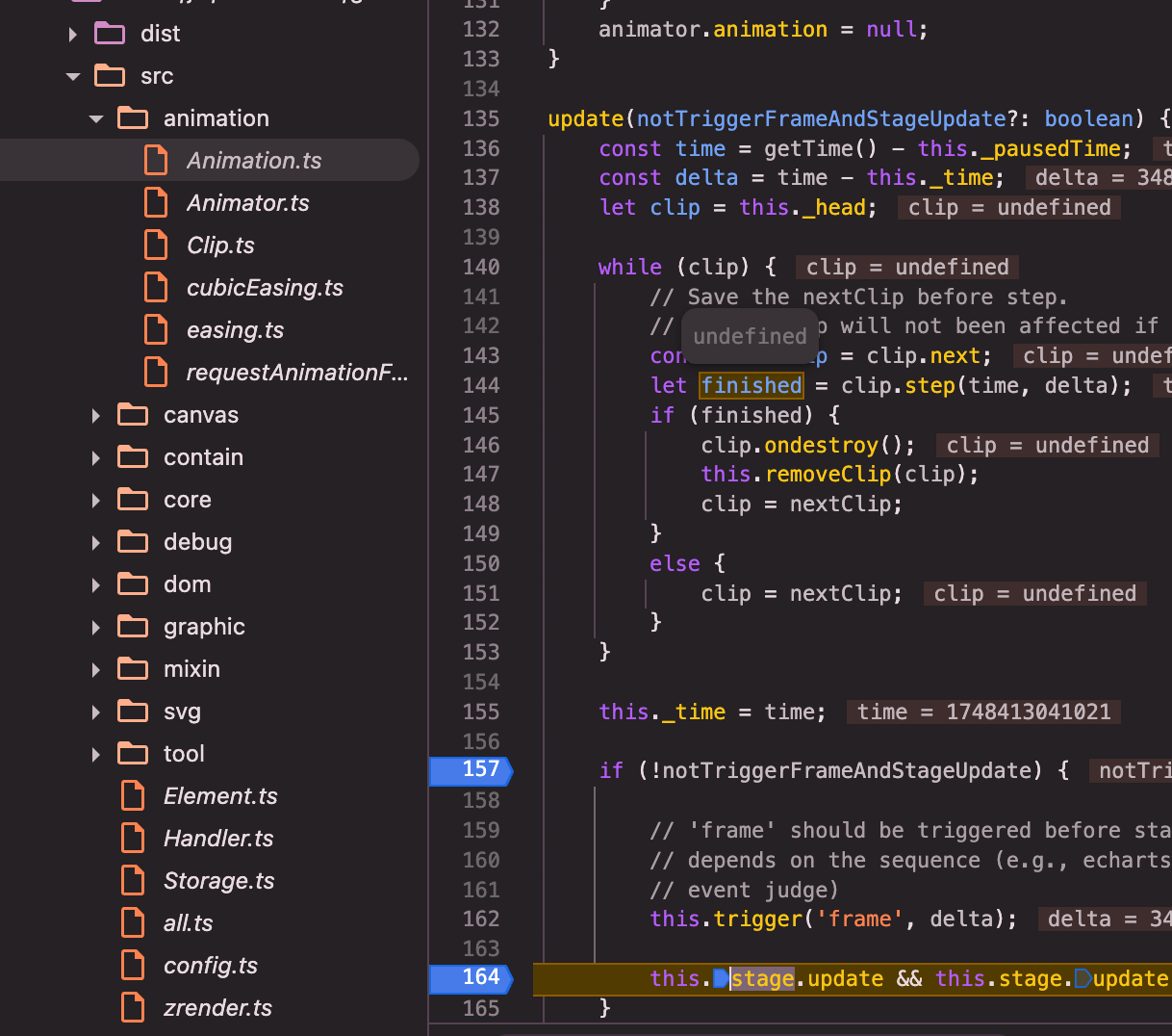 1. animation: animation.start() => _startLoop() => self.update() => this.stage.update() (animation的stage在zrender的constructor中初始化)